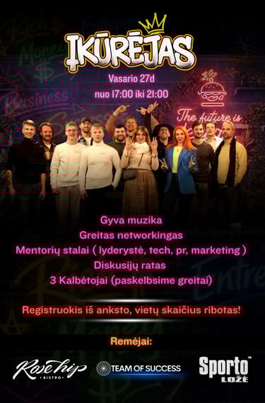 Mūsų renginiai turi labai lengvai virškinamus formatus. Pritaikyti aktyviems, ambicingiems, smalsiems žmonėms.